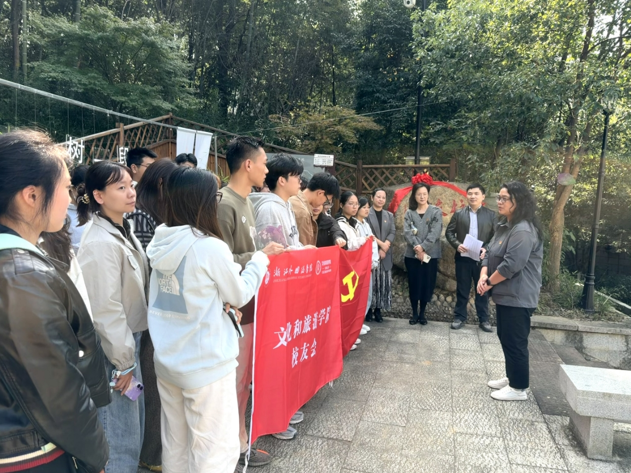 (学生党支部在校友林开展一堂特殊的思政课)